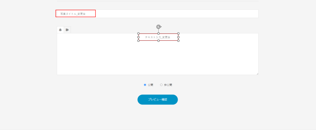 Zoomyはブログや写真投稿ページの入力枠のプレースホルダーが固定となっており、運営者の意に沿ったテキストメッセージに変更できません。
