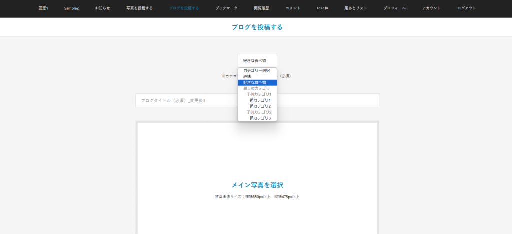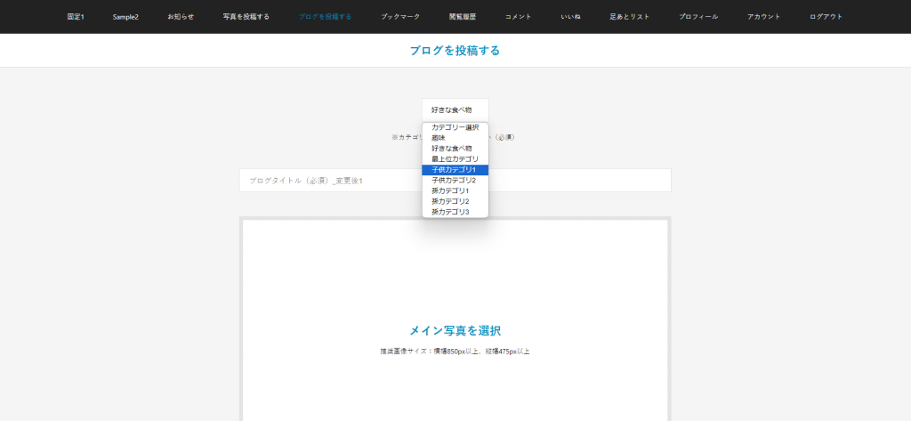 以下の投稿画面にて、子のカテゴリがある場合は親カテゴリが選択できないようになり、末端カテゴリのみ選択可能となります。