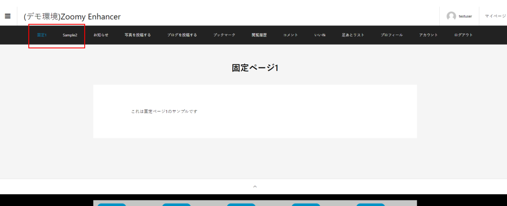 Zoomyが用意しているメニューに固定ページを追加できます