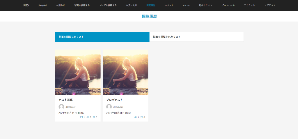 自分と異なるユーザのブログ/写真の閲覧履歴を残せます