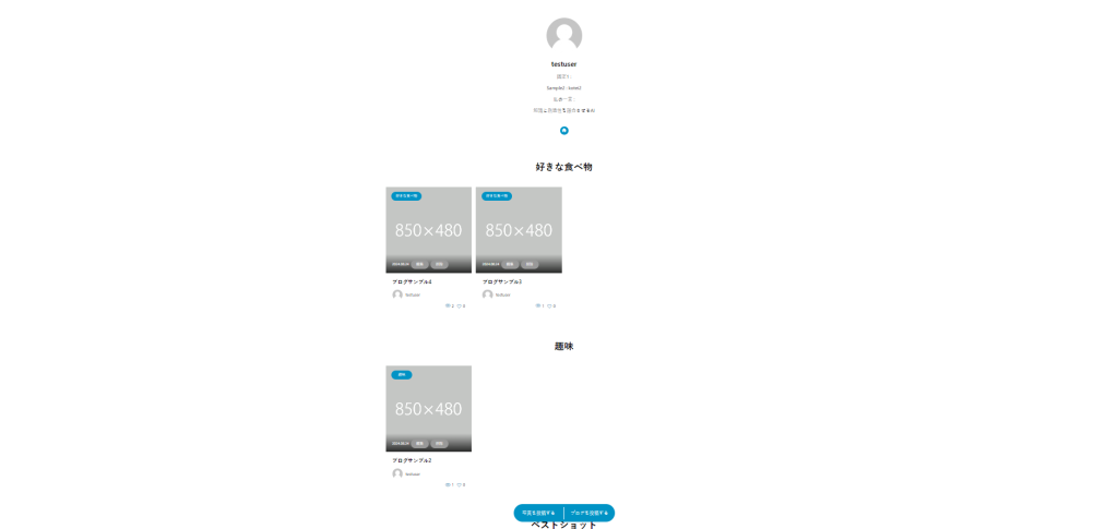 各ユーザのマイページに、自分の書いたオススメ記事を固定表示できます